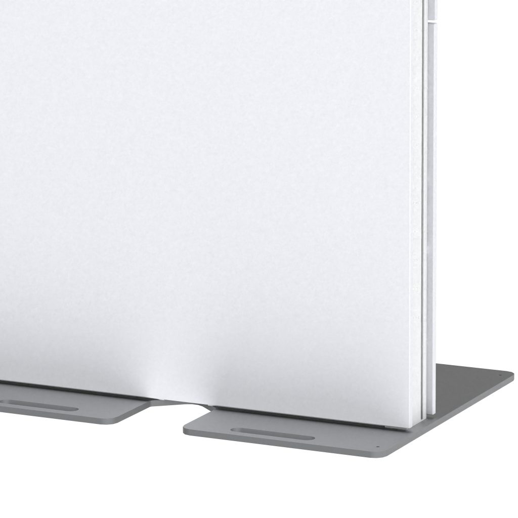 • Freistehend durch stabile Bodenplatte, optional durch Rollmodul erweiterbar zur mobilen Variante